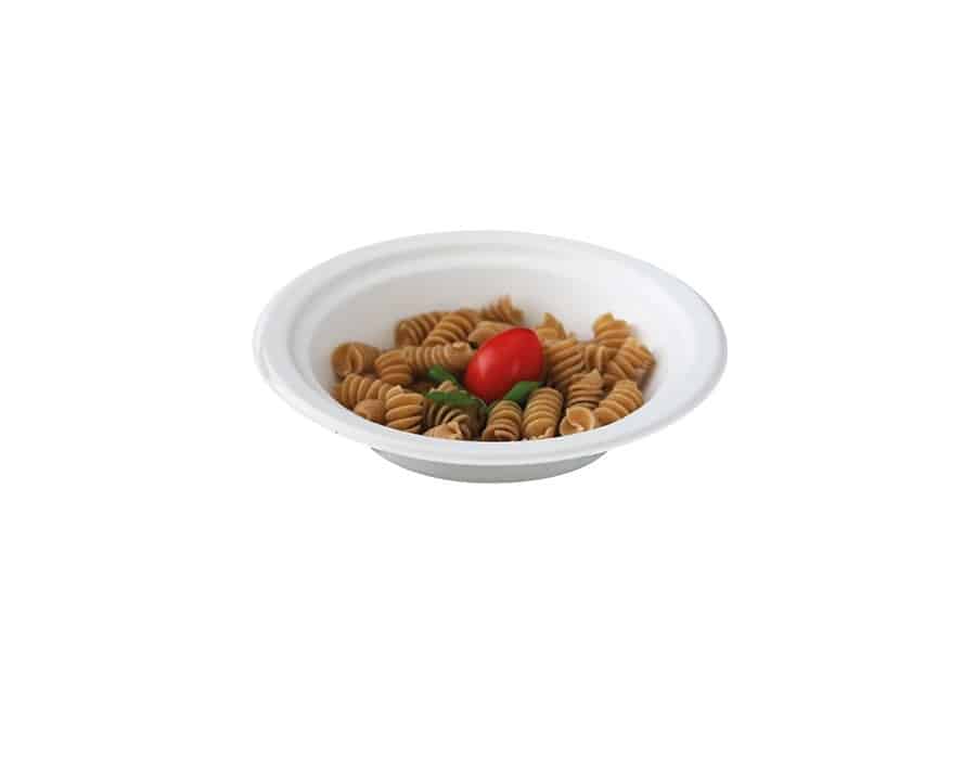 La polpa di cellulosa si ricava dalle fibre residue della lavorazione di alcune piante, in particolare della canna da zucchero, ed è pertanto al 100% naturale, completamente biodegradabile e compostabile secondo norma EN13432. Resiste ad una temperatura massima di 100°C e può essere utilizzata in microonde e nel forno tradizionale. Viene utilizzata per la produzione di piatti e bicchieri.