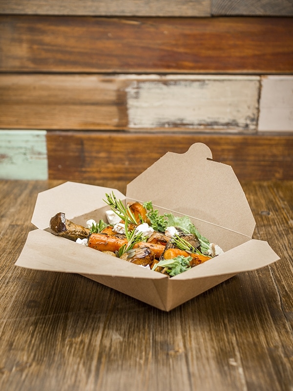 Impermeabile e funzionale, questo contenitore è il prodotto necessario per assicurare un asporto veloce e di qualità anche di fritti o semiliquidi: la chiusura dei lati a piega (e non saldatura) insieme al rivestimento in bioplastica di origine vegetale garantisce che non trasudino o fuoriescano liquidi.
