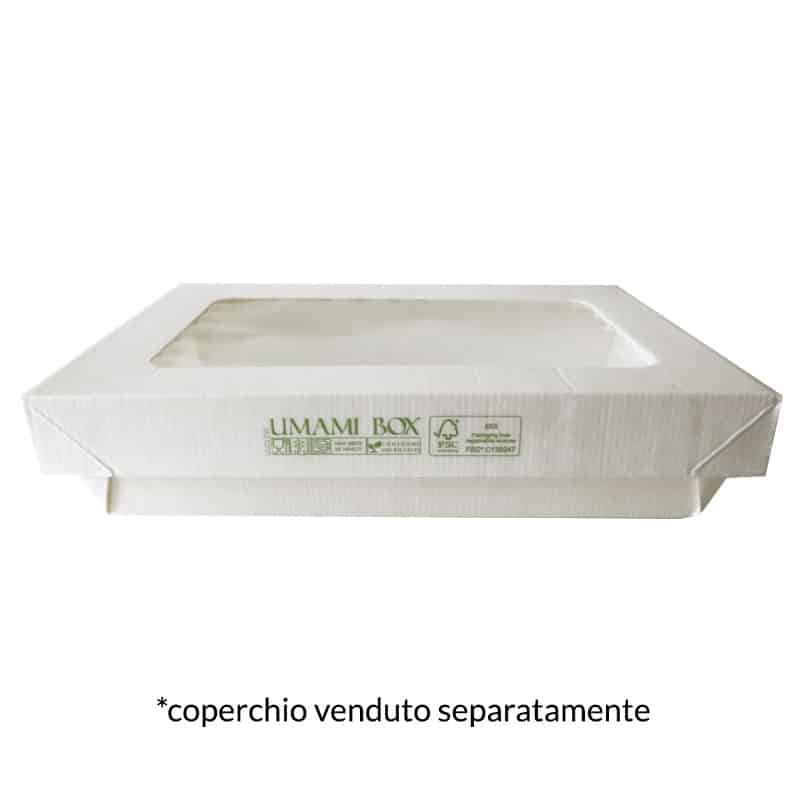 Questa vaschetta è la misura rettangolare della serie “Umami Box” composta da 5 modelli di diversa capienza per ogni esigenza di presentazione, impiattamento e tipologia di asporto.